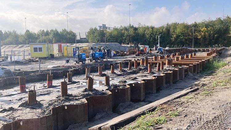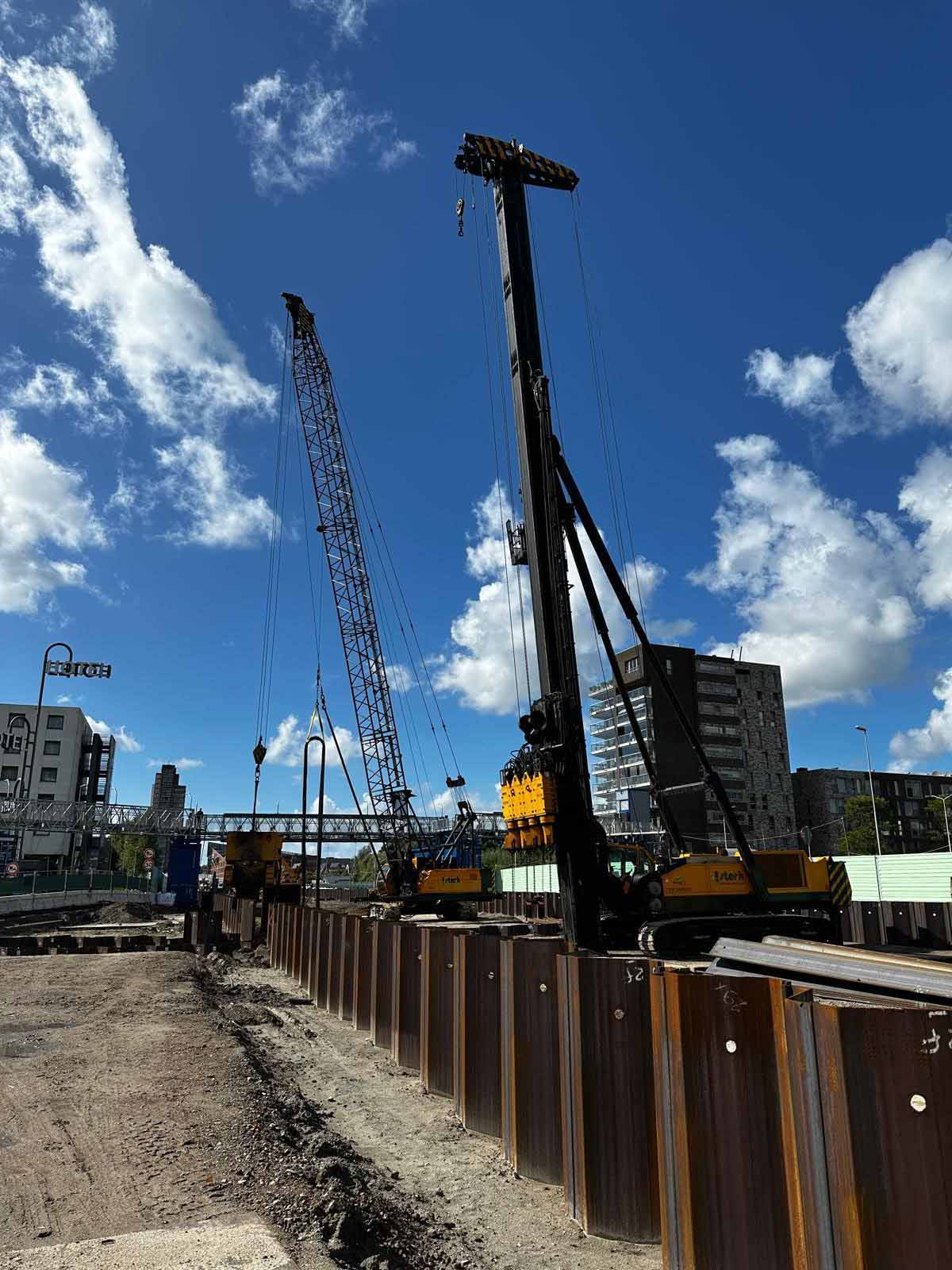 Afgelopen periode is aannemer Boskalis druk bezig geweest met het aanbrengen van alle damwanden. De damwanden zijn geplaatst om later de fundering aan te brengen en de tunnelbak te ontgraven tot een diepte van 6 meter. Dit is half september afgerond.